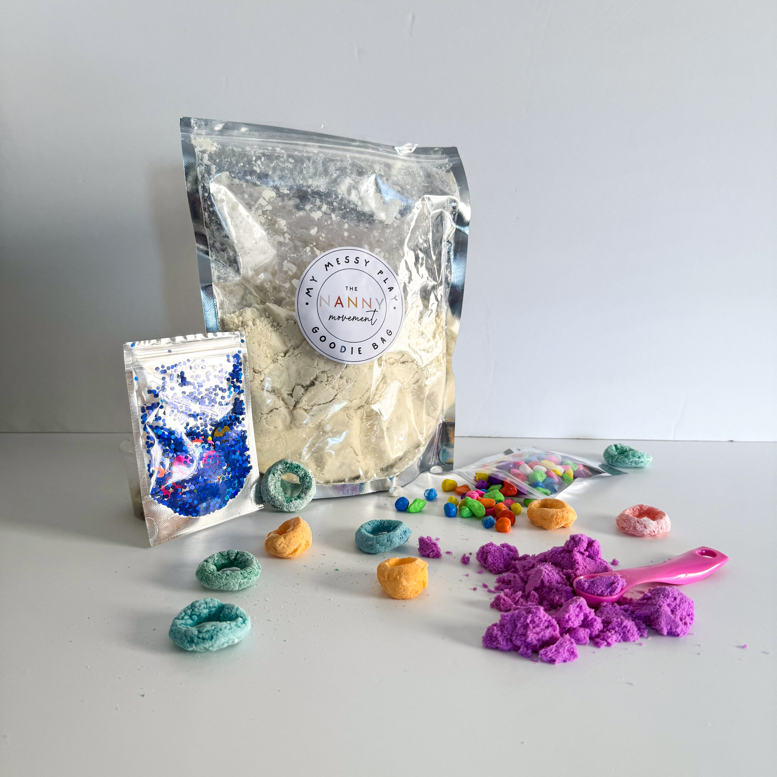 This goodie bag encourages your little one’s imagination, aswell as fine motor skills and sensory integration by adding all the extra little goodie bags included, creating their own little space station. The moonsand is an excellent soft texture to mold to your little one’s liking.
